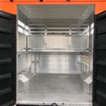 Caractéristiques : Système pont- portes AR – Séparation transversale – Demi-étage repliable avec grille de séparation relevable sous le toit – Clapets de fermeture des claires-voies